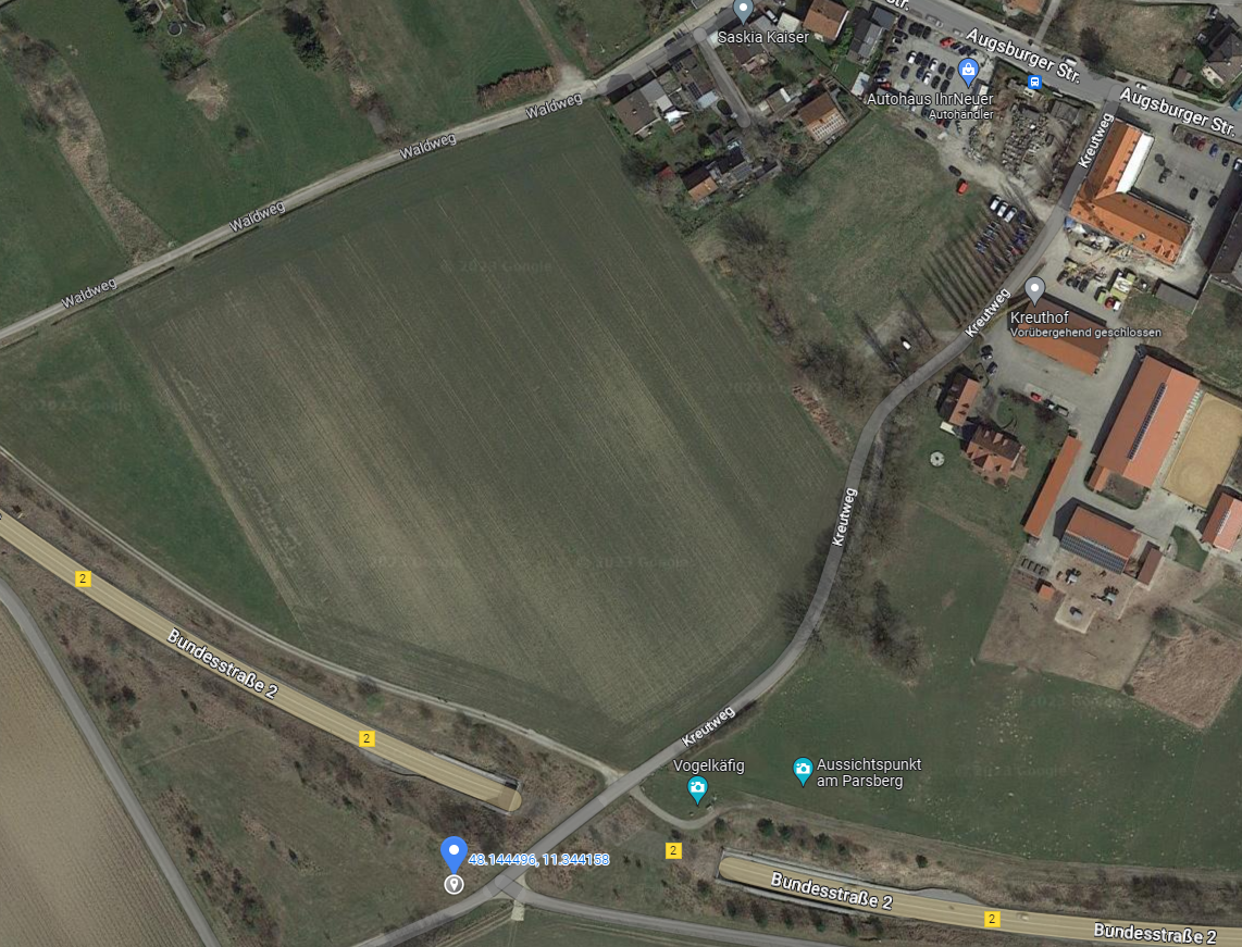 Anfahrt: von Germering in Richtung Fürstenfeldbruck, dann nach Puchheim Ort abbiegen. Gleich hinter dem Hotel Parsberg geht es links in den Kreutweg. Nach ca. 500 m sind die Bäume links vor dem Wildgehege.